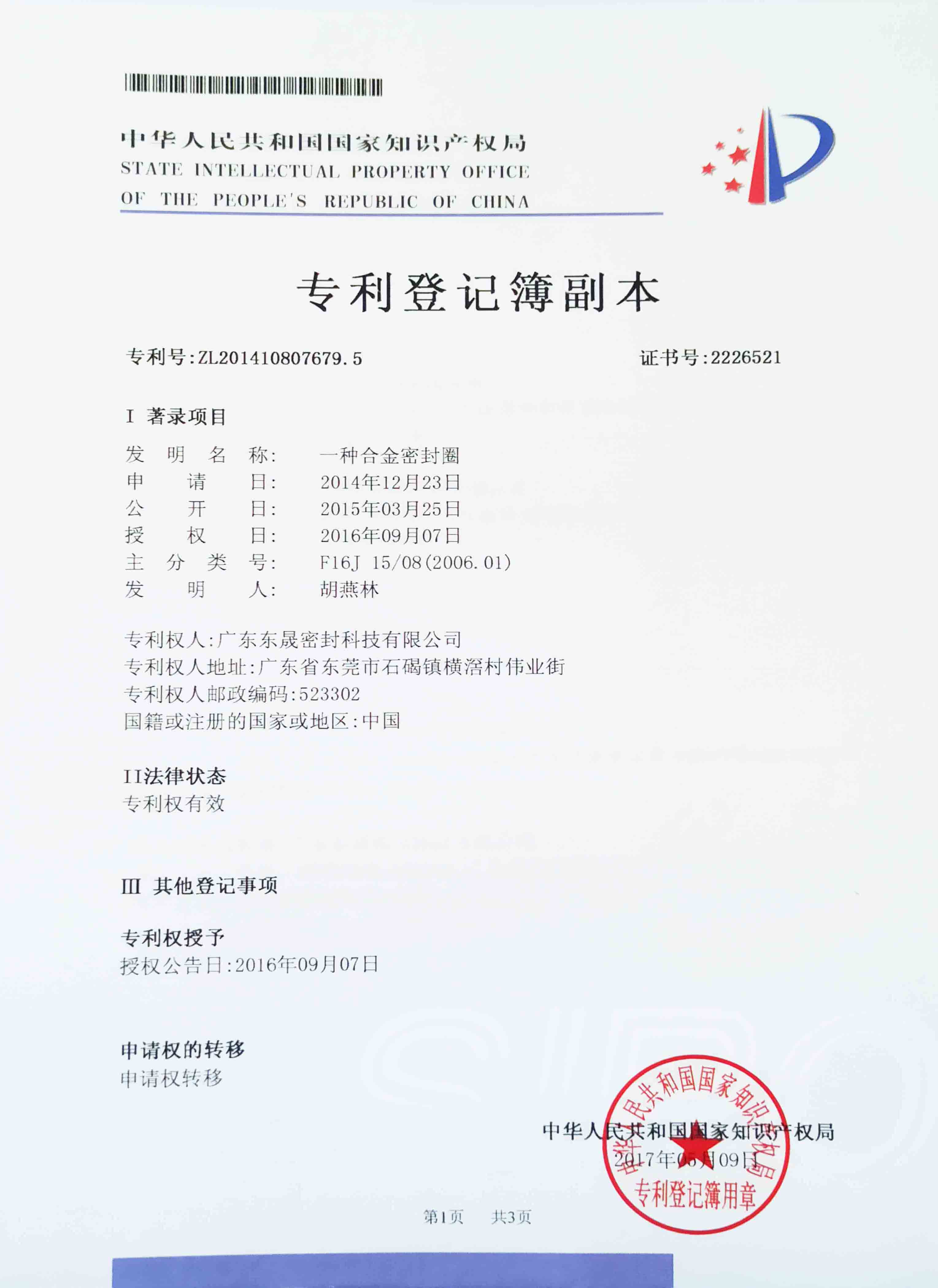 東晟密封榮譽(yù)資質(zhì)每一份榮譽(yù)源于我們對(duì)品質(zhì)的不斷苛求
